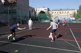 Региональный проект "Дворовый тренер" в Пермском крае. Спортивная площадка. Дети играют в футбол.