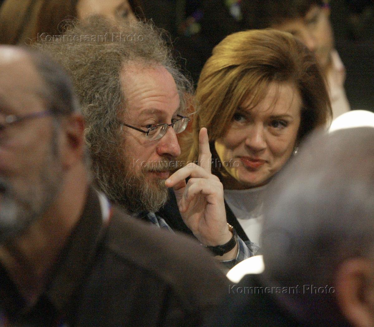 Film director Eldar Ryazanov (left) and Russian Culture Minister Mikhail Shvydkoi (right) attended the TV-company ATV 15th anniversary celebrations.
