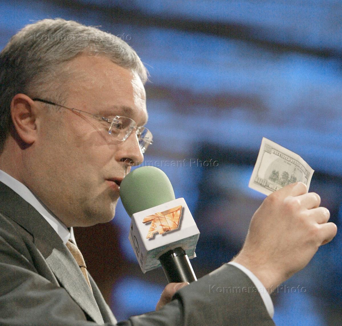 Russian Culture Minister Mikhail Shvydkoi (right) took part in the TV-company ATV 15th anniversary celebrations. The event was held in the TV-company's office.