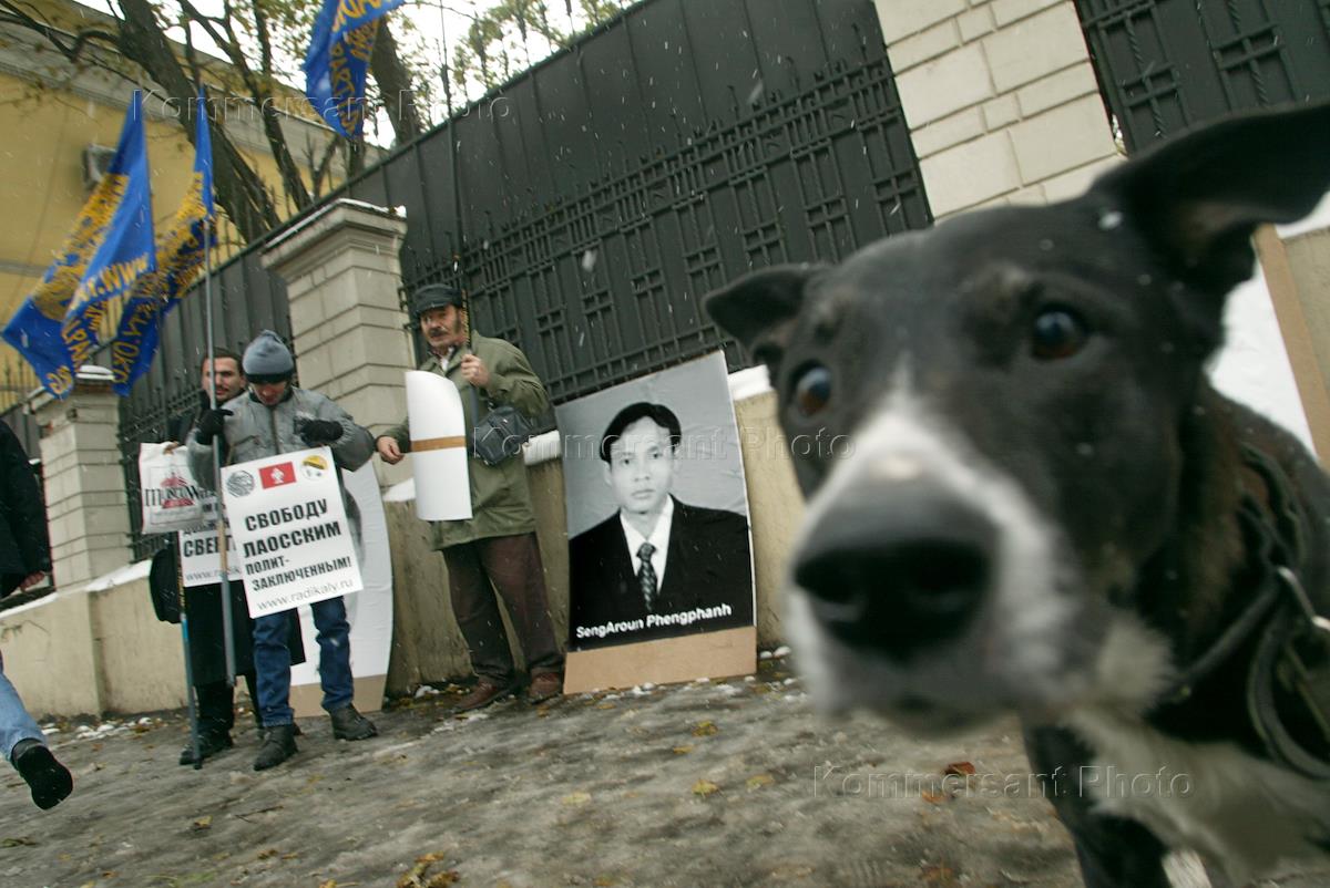 The rally in support of freedom and democracy in Laos was held near the Laos embassy and was organised by the russian radicals committee.