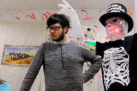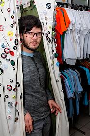 Художник Александр Жунев, автор граффити "Гагарин. Распятие", во время интервью.