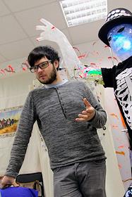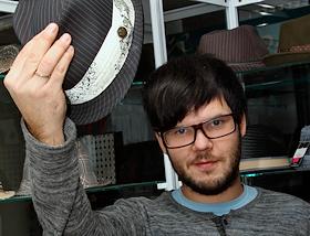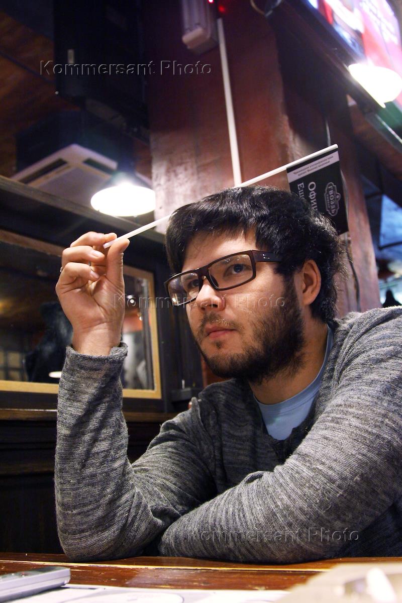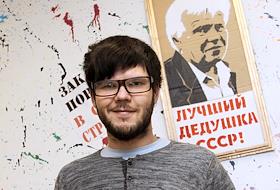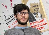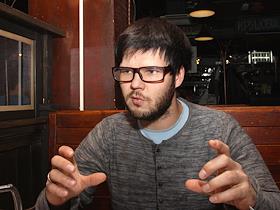 Художник Александр Жунев, автор граффити "Гагарин. Распятие", во время интервью.