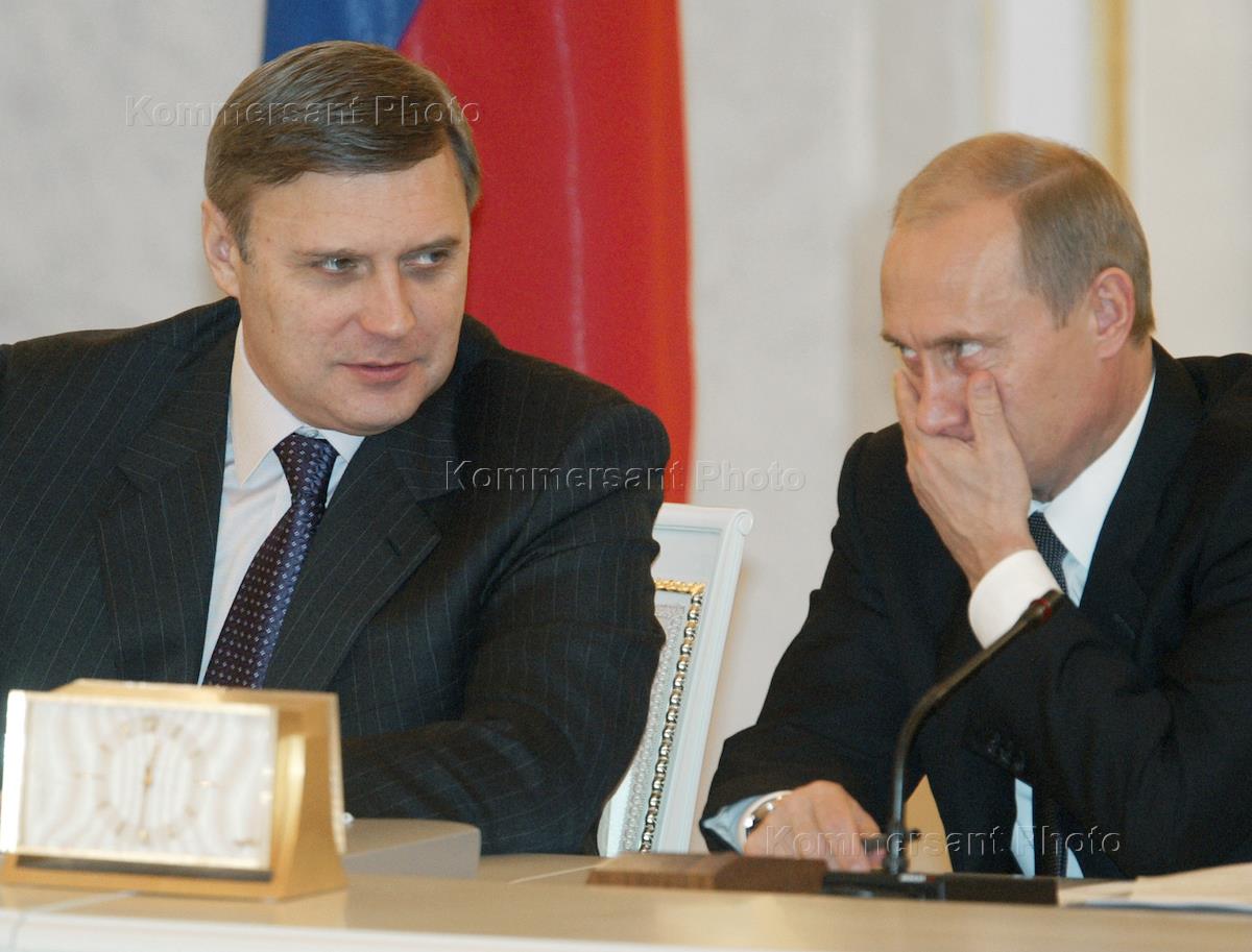 Председатель Правительства России Михаил Касьянов (слева) и Президент России Владимир Путин (справа) во время заседания Государственного совета в Кремлевском дворце.