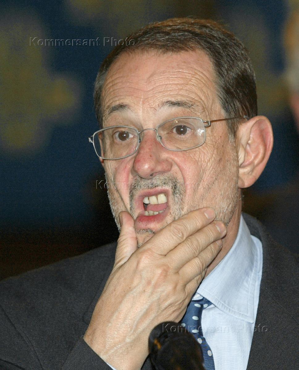 Министр иностранных дел Италии Франко Фраттини во время пресс-конференции, посвященной подготовки к саммиту "Россия - ЕС", который пройдет в Риме в ноябре 2003 года. Пресс-конференция состоялась в особняке министерства иностранных дел (МИД) России.