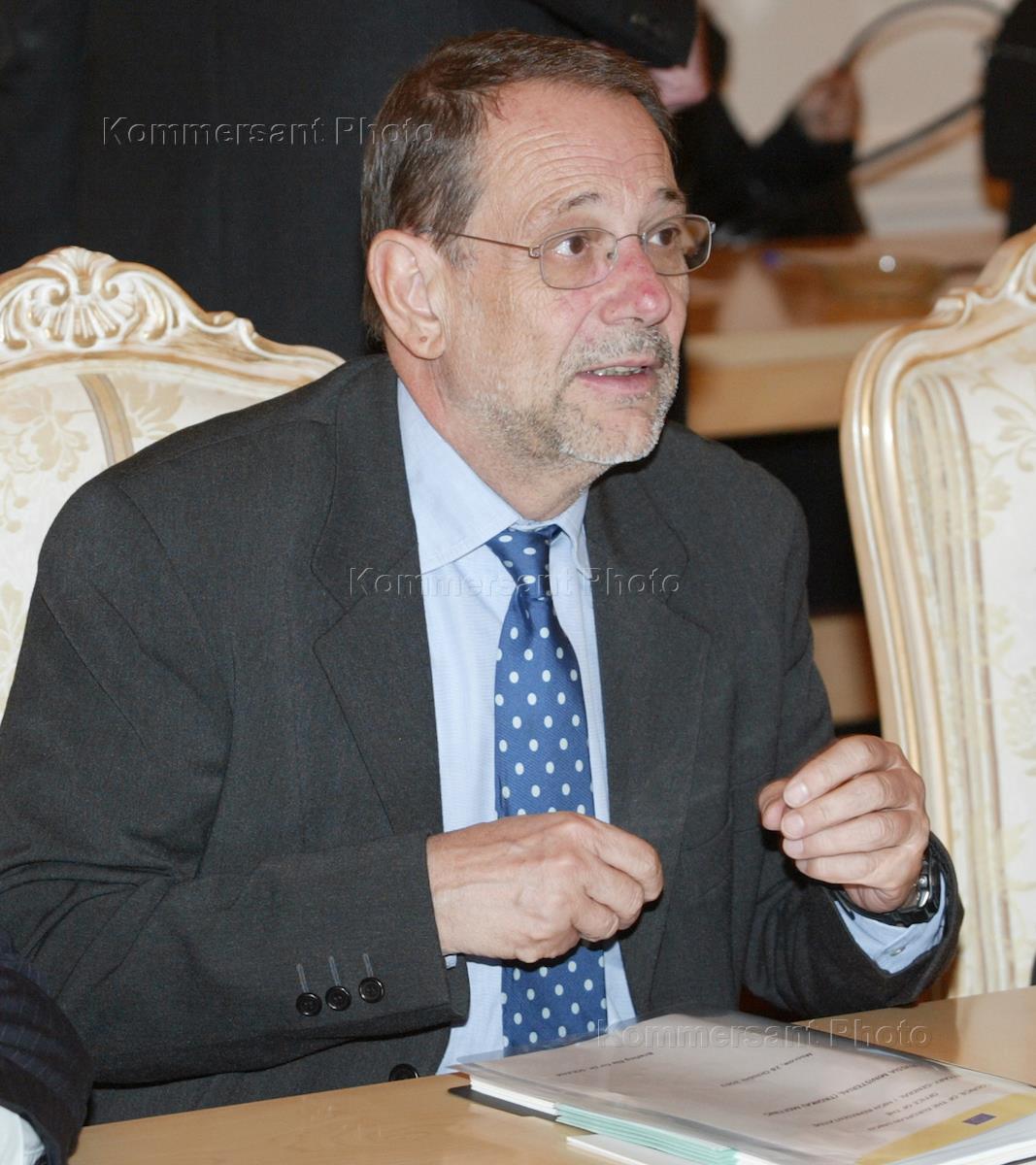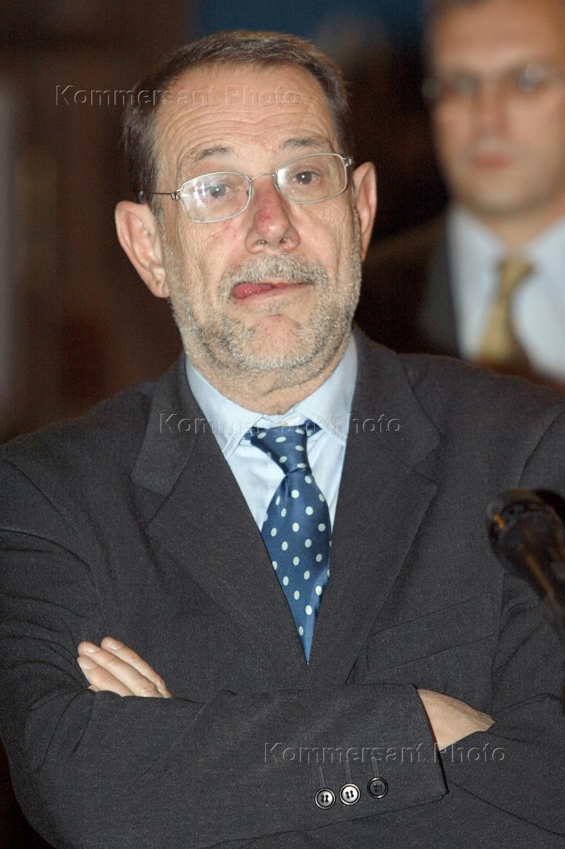 Министр иностранных дел Италии Франко Фраттини во время пресс-конференции, посвященной подготовки к саммиту "Россия - ЕС", который пройдет в Риме в ноябре 2003 года. Пресс-конференция состоялась в особняке министерства иностранных дел (МИД) России.