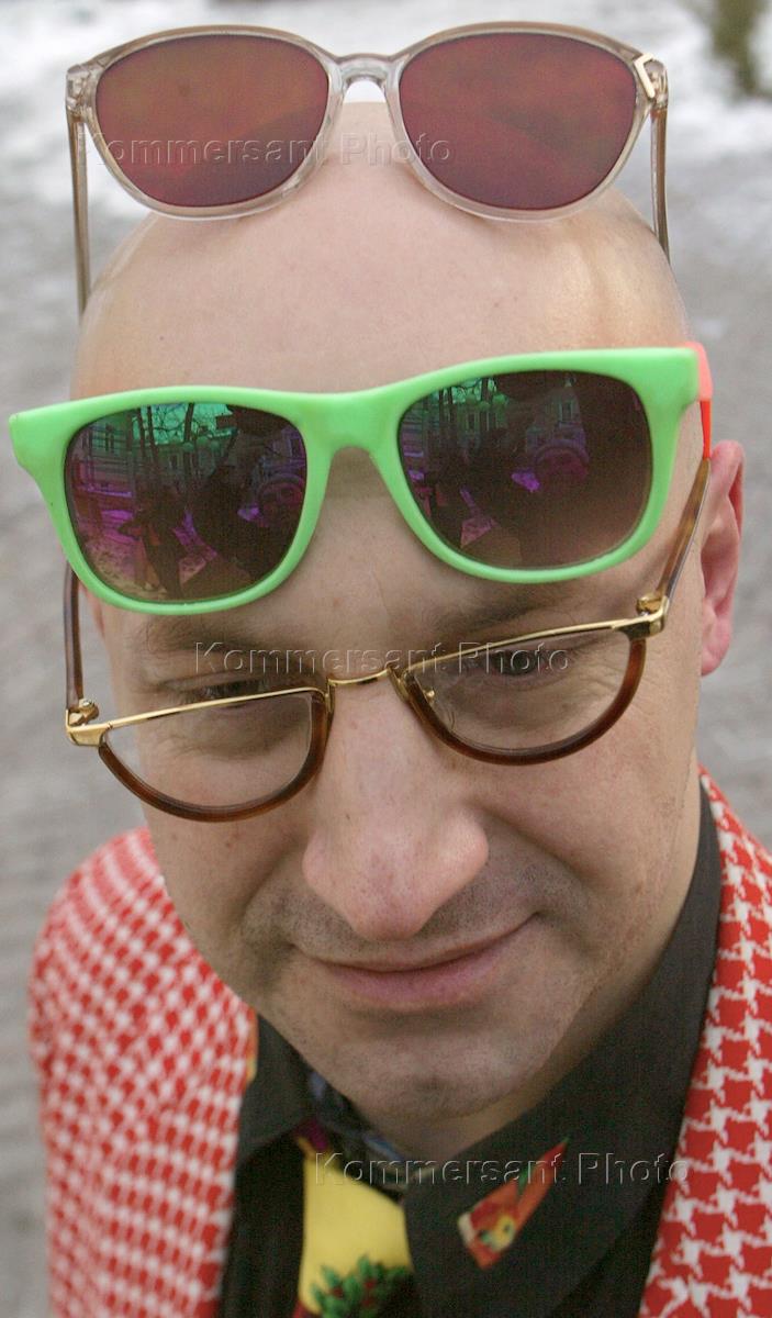 Художник Герман Виноградов во время акции, посвященной дню рождения художника Гарика Гориллы (Олега Коломейчука), которая прошла на улице в Хохловом переулке.
