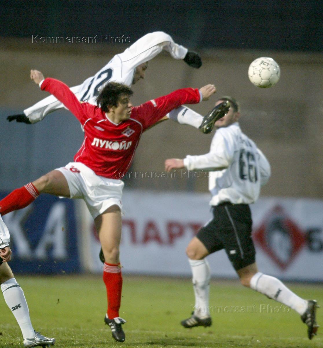 Russian Football Championship. Football player Mihailo Pjanovic (left) during the match of the premier league between "Torpedo-Metallurg" and "Spartak" teams. The match was held in the "Torpedo" stadium and finished with 2:0 score.