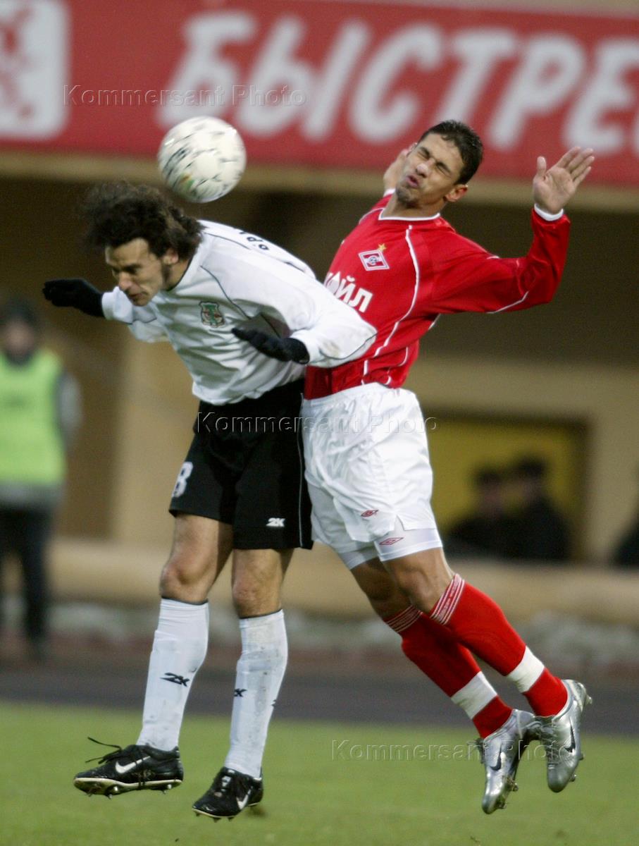 Чемпионат России по футболу. Футболисты Мойсес Пинейро (слева) и Эктор Бракамонте (справа) во время матча премьер-лиги между командами "Торпедо-Металлург" - "Спартак" (2:0). Матч прошел на стадионе "Торпедо".