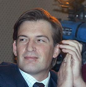 General director of the "Telecominvest" company Maxim Gorokhov is interviewed in his cabinet.