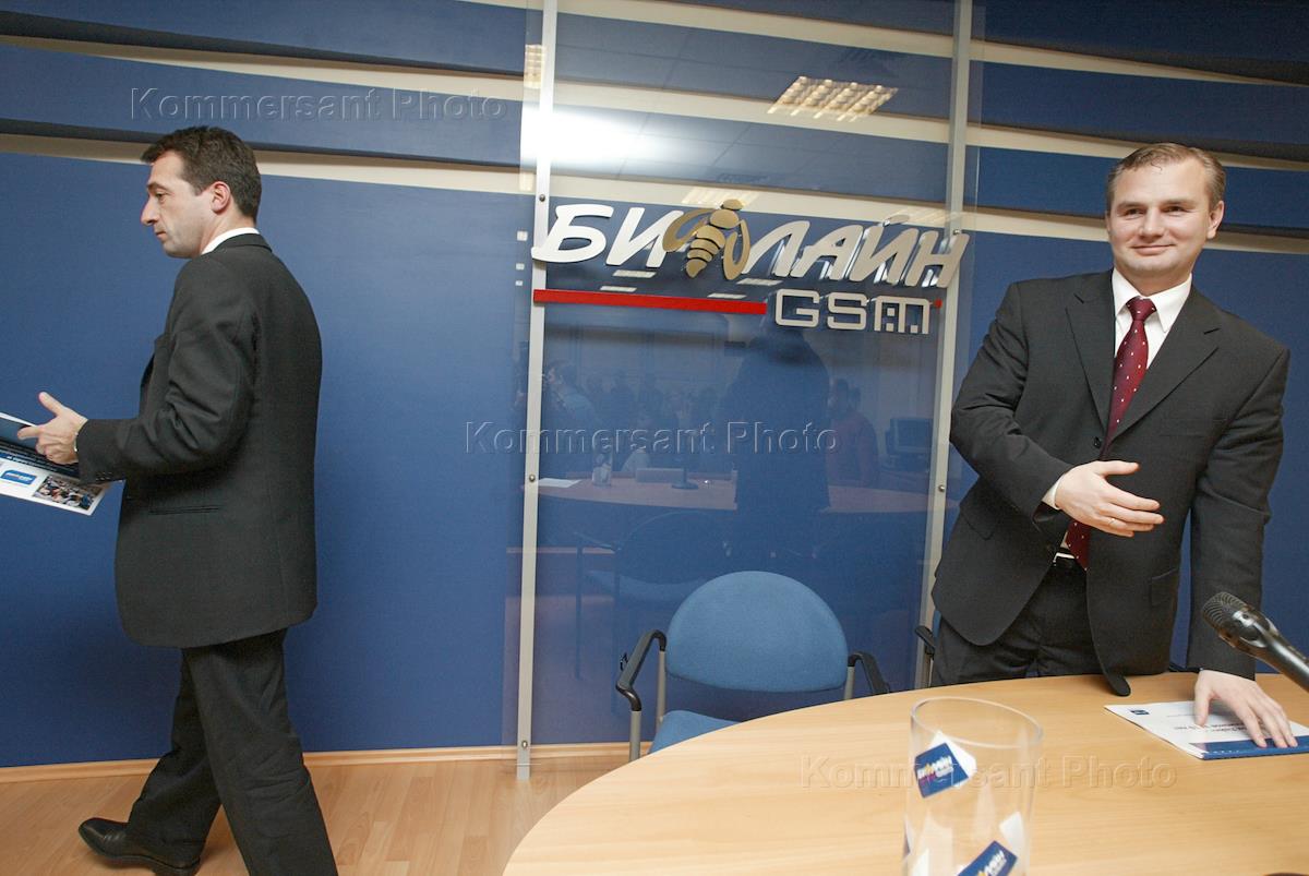 Генеральный директор ОАО "ВымпелКом" Александр Изосимов (слева) и первый вице-президент компании "Вымпелком" Николай Прянишников (справа) на пресс-конференции компании, посвященной представлению нового генерального директора ОАО "ВымпелКом". Г-н Изосимов приступил к своим обязанностям с 1 октября 2003 года. Джо Лундер, являвшийся генеральным директором «ВымпелКома» с 2001 года, с 1 октября займет должность председателя совета директоров.