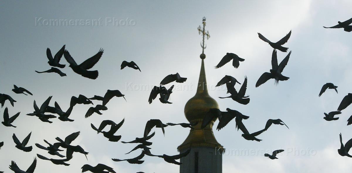 Свято-Даниловский монастырь. Девочка кормит голубей.