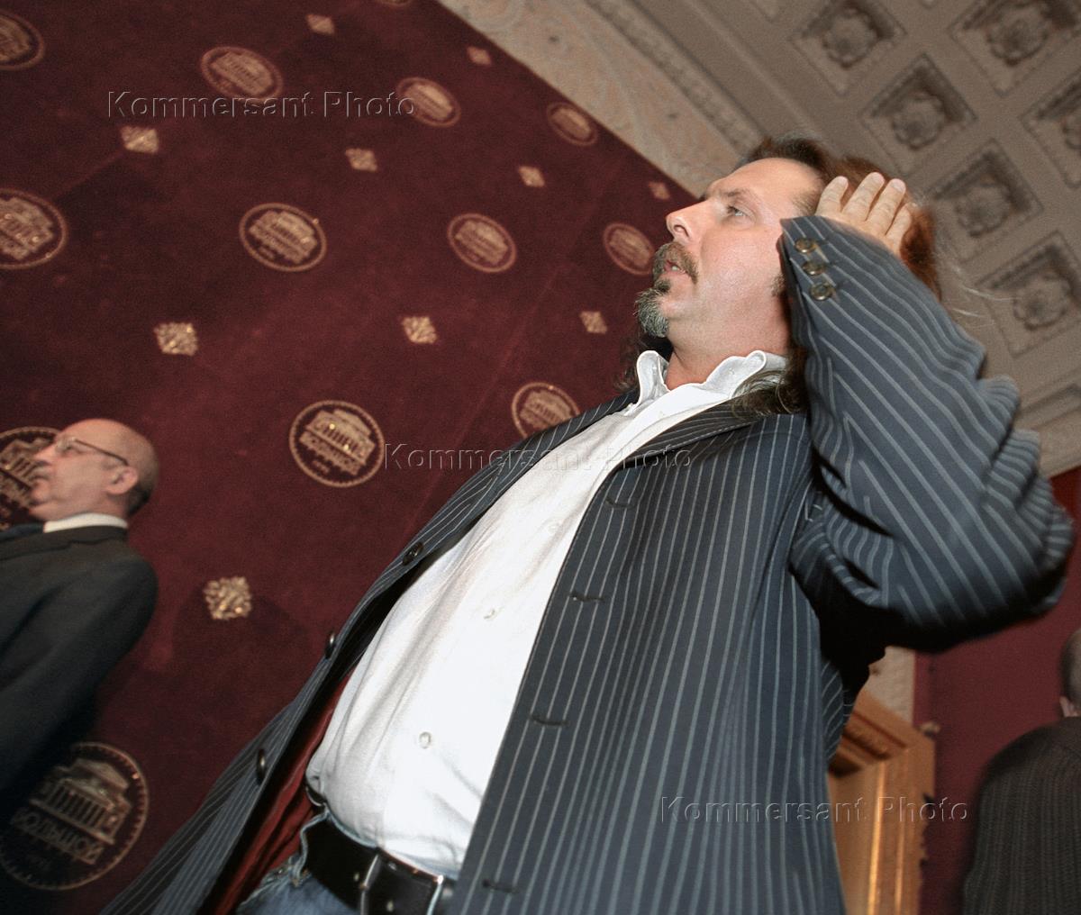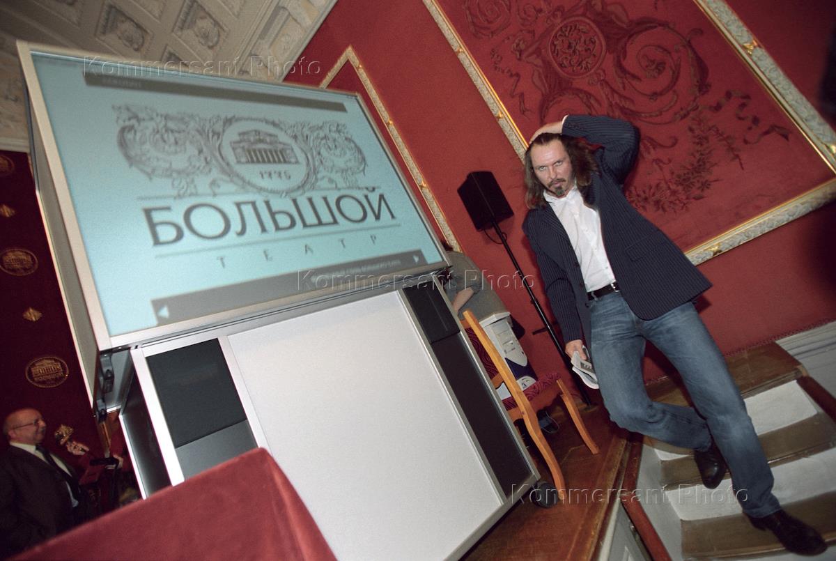 Режиссер Юрий Грымов во время пресс-конференции "Новый имидж - новый фирменный стиль Большого театра". Пресс-конференция прошла в Бетховенском зале Большого театра.