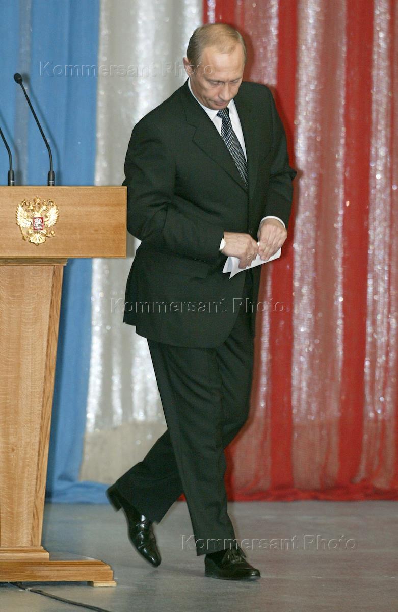 Президент России Владимир Путин во время праздничного концерта, посвященному Дню милиции. Концерт состоялся в Государственном Кремлевском Дворце.