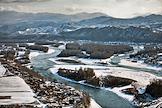 Жанровая фотография. Вид на реку Катунь и автодорогу М-52 "Чуйский тракт" в Майминском районе Республики Алтай.