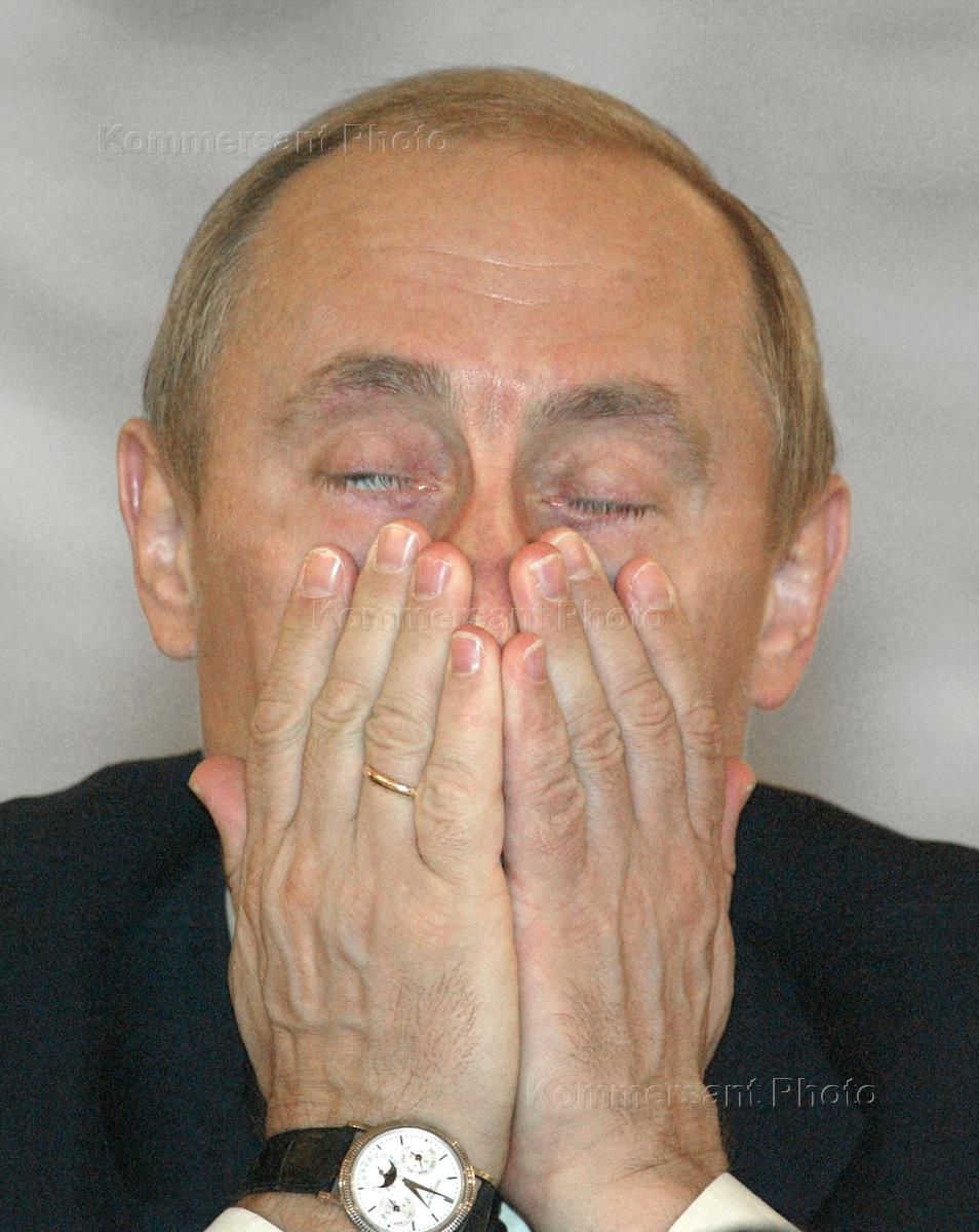 Russian President Vladimir Putin rubs his eye-sockets during the session of the Russian Municipalities Congress held to mark the Congress's 5th anniversary. The event took place in the Unions House Pillar Hall.