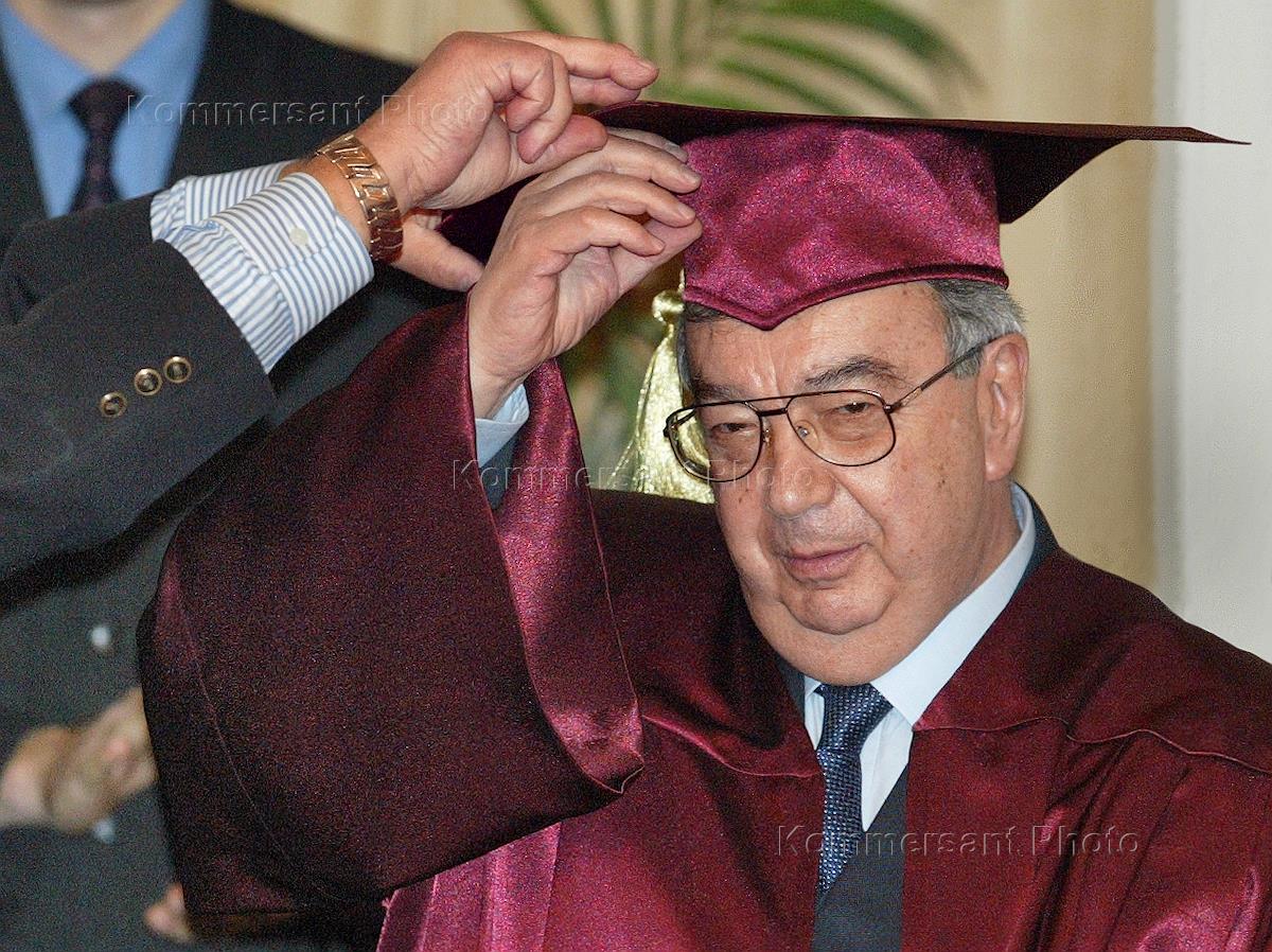 President of the Russian Trade and Commerce Chamber (TPP) Yevgeny Primakov receives the doctor emeritus regalia in the Russian Foreign Ministry Diplomatic Academy.