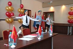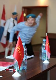 Общее собрание пермского регионального отделения партии "Родина". Выдвижение кандидатов на предстоящих 14 сентября выборах. Выступление артистов. Флажок с символикой партии.