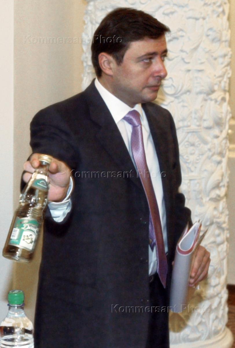 Губернатор Красноярского края Александр Хлопонин (слева) и мэр Москвы Юрий Лужков (справа) на совместном заседании Совета безопасности и Государственного Совета России. Заседание состоялось в Кремле.