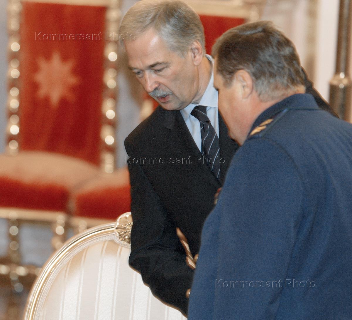 The Krasnoyarsk region governor Alexander Khloponin (left) and Moscow mayor Yury Luzhkov (right) took part in the joint meeting of the Security Council and the State Council of Russia. The event was held in the Kremlin.
