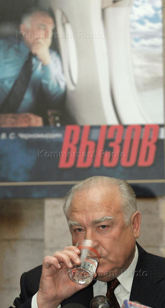 Russian ambassador to Ukraine Victor Chernomyrdin is interviewed at the news conference summoned to present his book - 'The Challenge'. The conference was held in the ITAR-TASS news agency headquarters.
