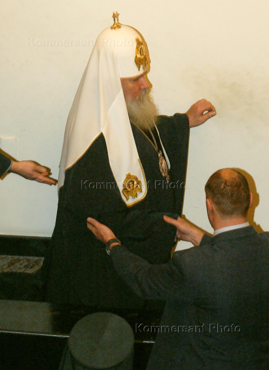 Патриарх Московский и всея Руси Алексий II (справа) во время заседания международной богословской конференции Русской православной церкви "Православное учение о Церкви". Конференция состоялась в гостиничном комплексе "Даниловский".