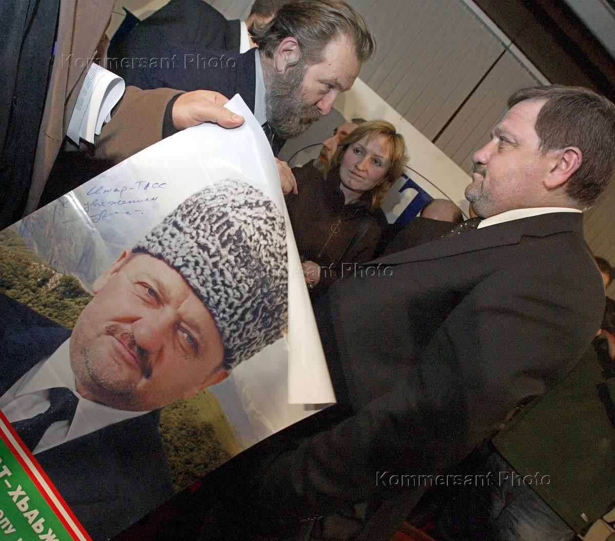 President of the Chechen republic Ahmat Kadyrov (right) attended the news conference where were discussed questions of economic and social revival of the republic and relationship with the federal center. The event was held in the ITAR-TASS office.