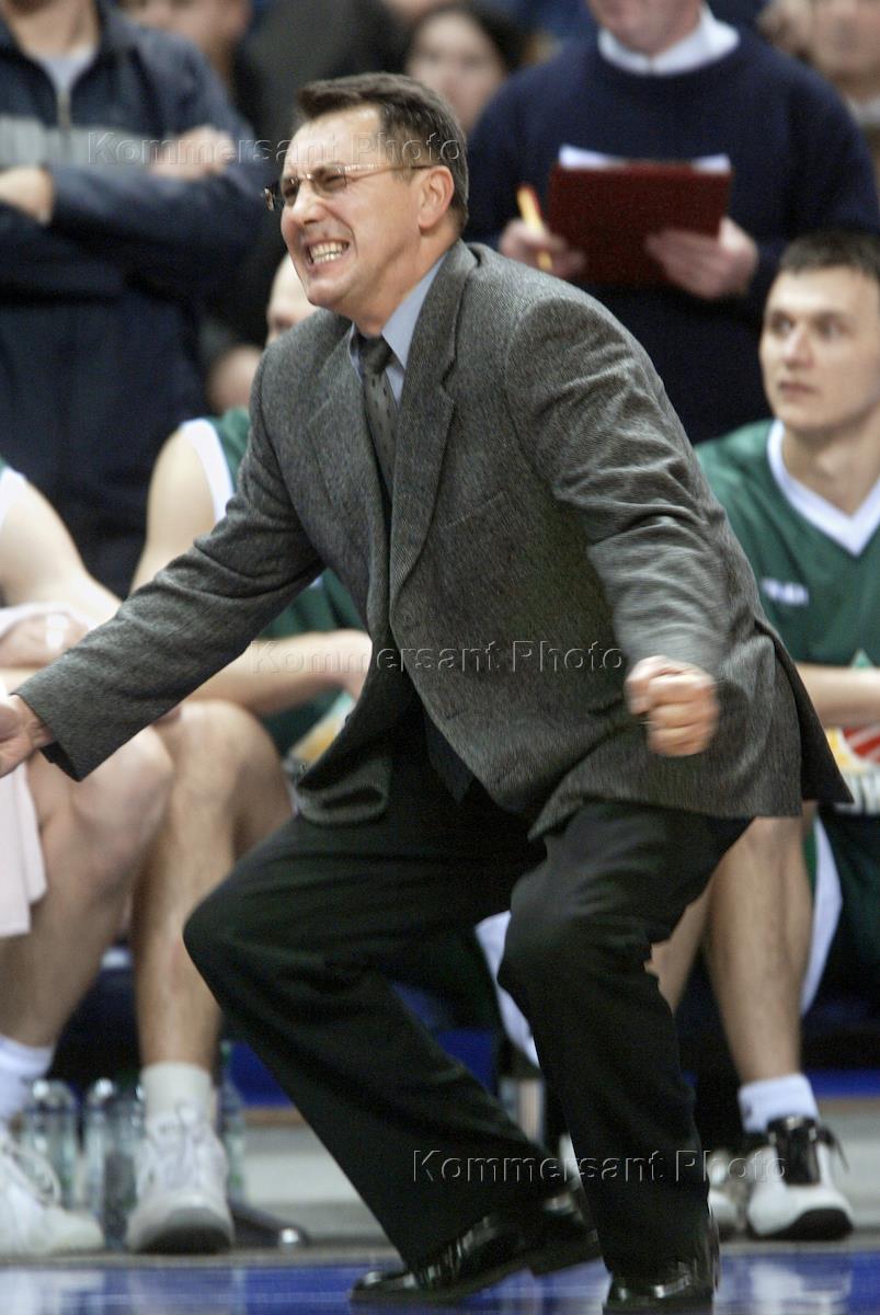 Chief coach of the Russian basketball team Stanislav Yeremin watches the CSKA(Moscow)/UNIX(Kazan) match eventually won by the Moscow team by 78:69.
