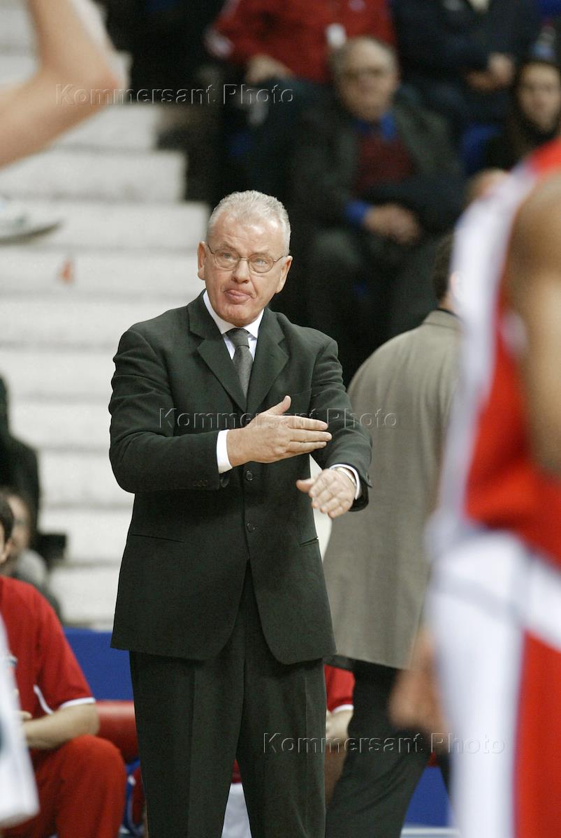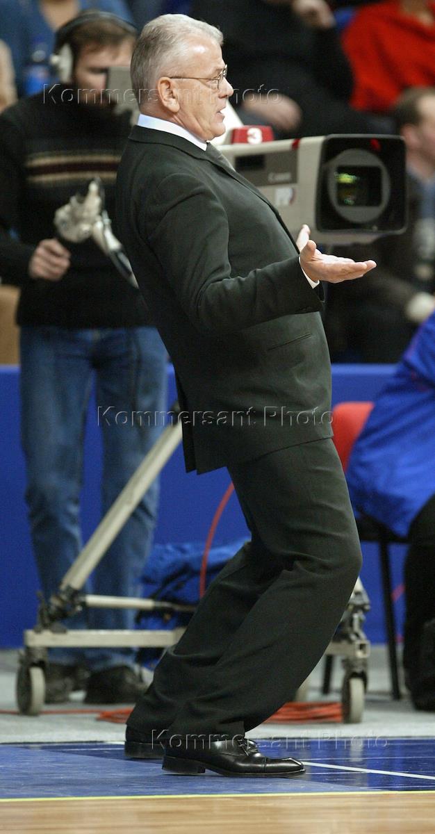 Чемпионат России по баскетболу. Главный тренер баскетбольной команды "ЦСКА" Душан Ивкович наблюдает за игрой баскетболистов своей команды во время матча "ЦСКА" (Москва) и "УНИКС" (Казань) в спорткомплексе ЦСКА. Встреча закончилась со счетом 78 : 69 в пользу московского "ЦСКА".