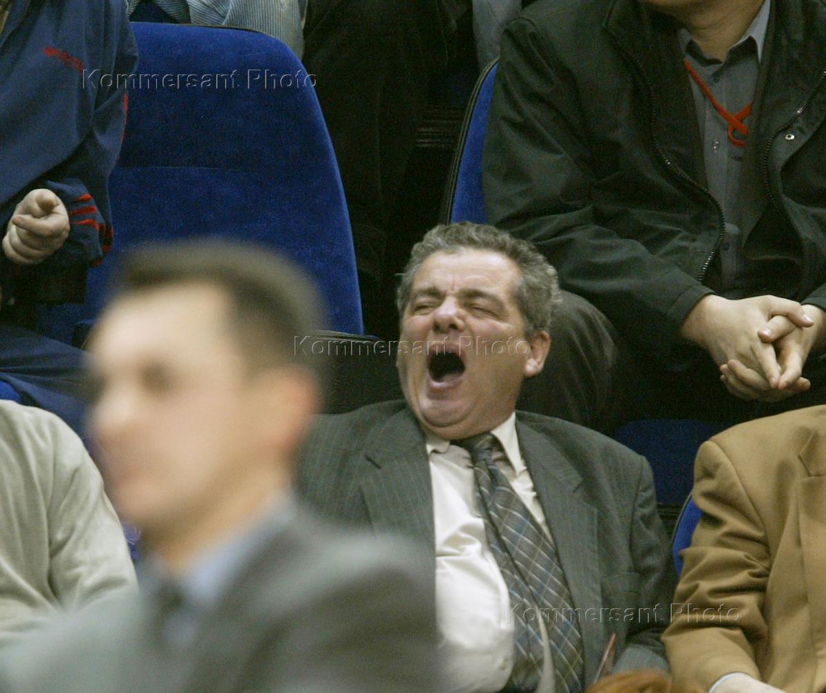 Chief coach of the Russian basketball team Stanislav Yeremin watches the CSKA(Moscow)/UNIX(Kazan) match eventually won by the Moscow team by 78:69.
