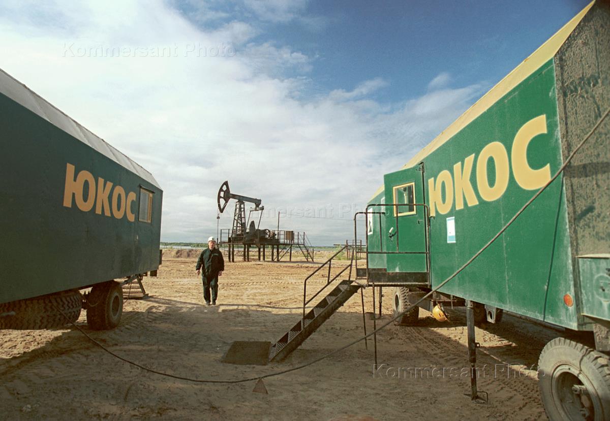 Западно-Сибирский нефтедобывающий комплекс. Вагончики для нефтяников с надписью "ЮКОС".