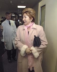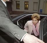 Russian Deputy Prime Minister Galina Karelova arrives at the Burdenko Militaty Hospital on a visit.