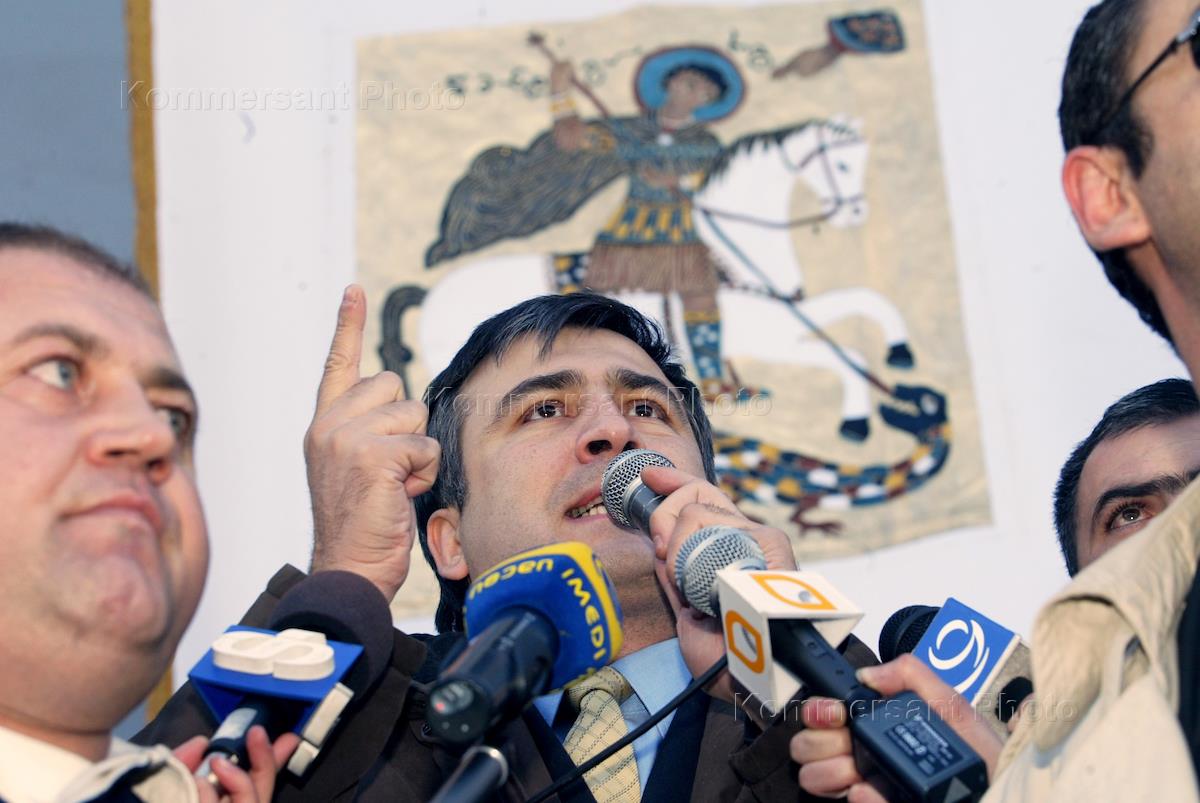 Государственный переворот в Грузии. Лидер радикального оппозиционного блока "Саакашвили - национальное движение" Михаил Саакашвили на митинге у здания парламента Грузии.
