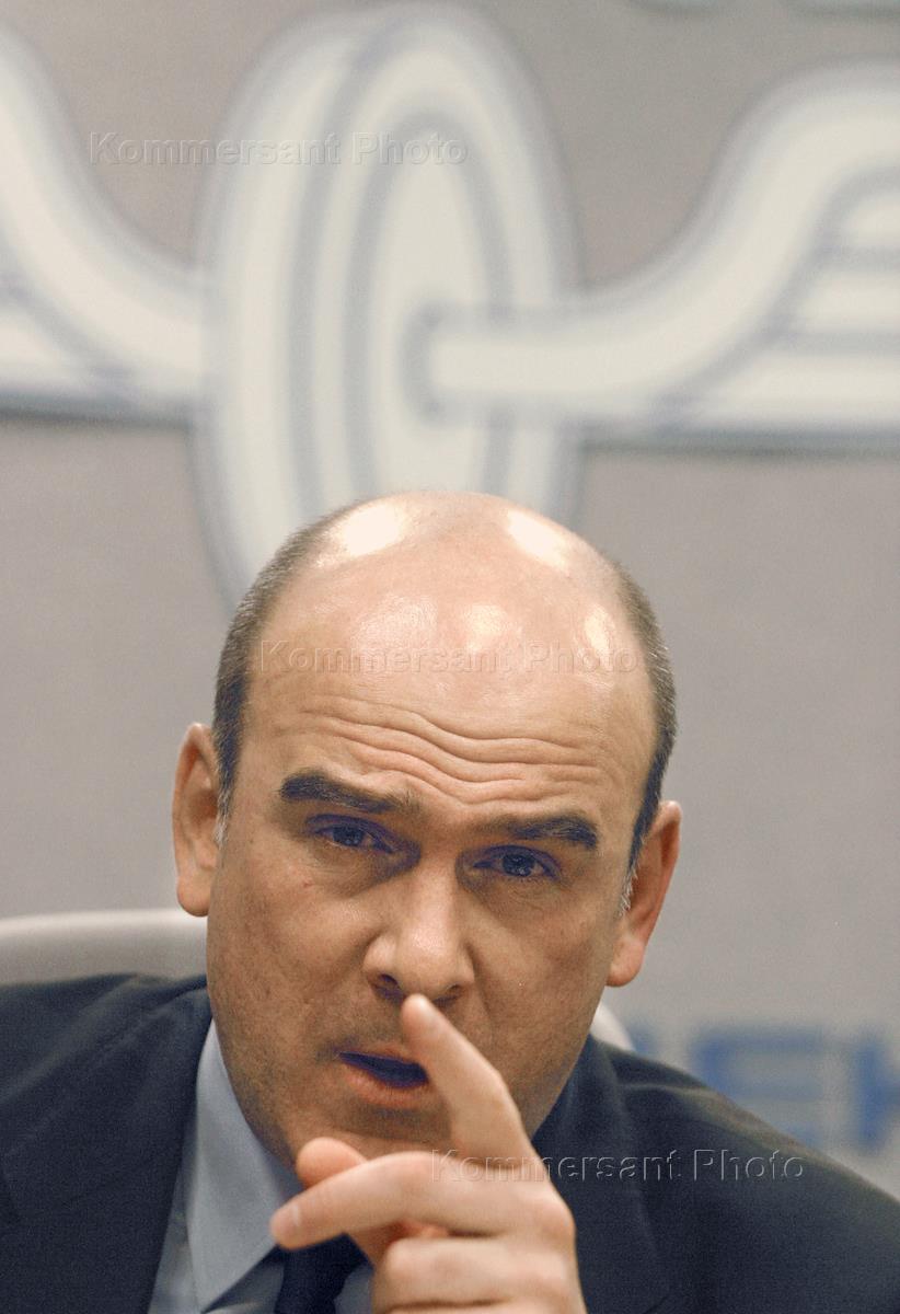 Vice president of the RZhD (Russian Raiways) company Sergey Kozyrev takes part in the news conference headlined 'Suburban Trains Development and Reforms of the Railway Sector'. The news conference was held in the RZhD press centre.