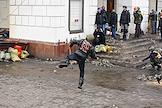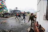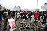 Евромайдан после ночи противостояния. Уличные бои не утихают. Сбор брусчатки.