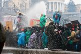 Евромайдан после ночи противостояния. Уличные бои не утихают. Баррикада в направлении улицы Институтской. Милиция поливает митингующих из водомета.