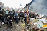 Евромайдан после ночи противостояния. Уличные бои не утихают. Священнослужители на передовой.