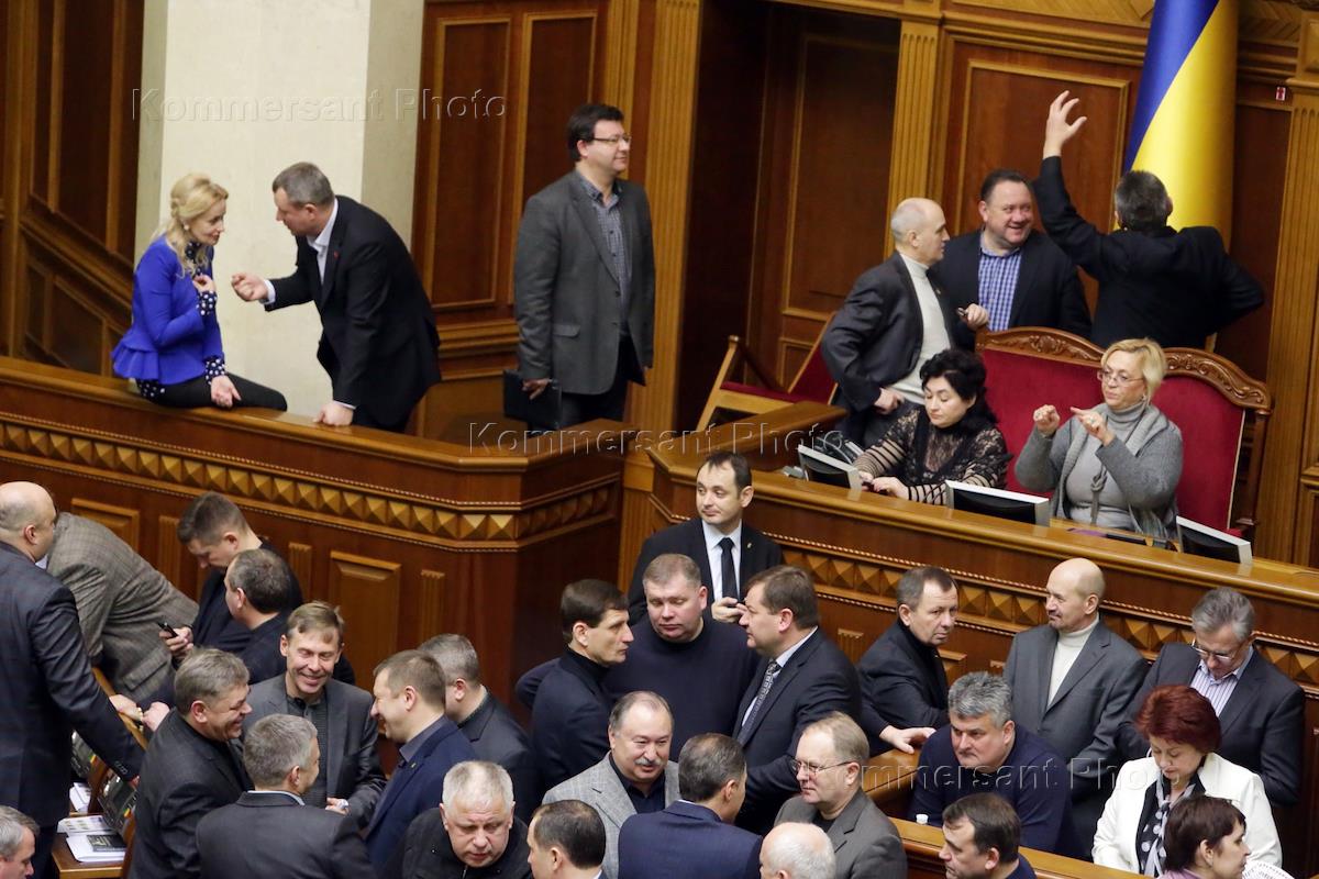 Заседание Верховной рады Украины (ВРУ). Народные депутаты от фракции "Партии регионов" на заседании.