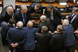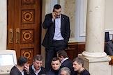 Заседание Верховной рады Украины (ВРУ). Оппозиция заблокировала президиум. Лидер фракции Политической партии "УДАР (Украинский Демократический Альянс за Реформы) Виталия Кличко" Виталий Кличко (в центре) во время заседания.