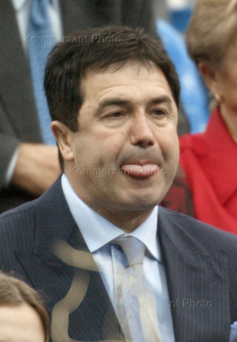Чемпионат мира по теннису среди женских команд "Кубок Федерации 2003". Бизнесмен Анзори Аксентьев на трибуне во время соревнований. Чемпионат прошел в спорткомплексе "Олимпийский".