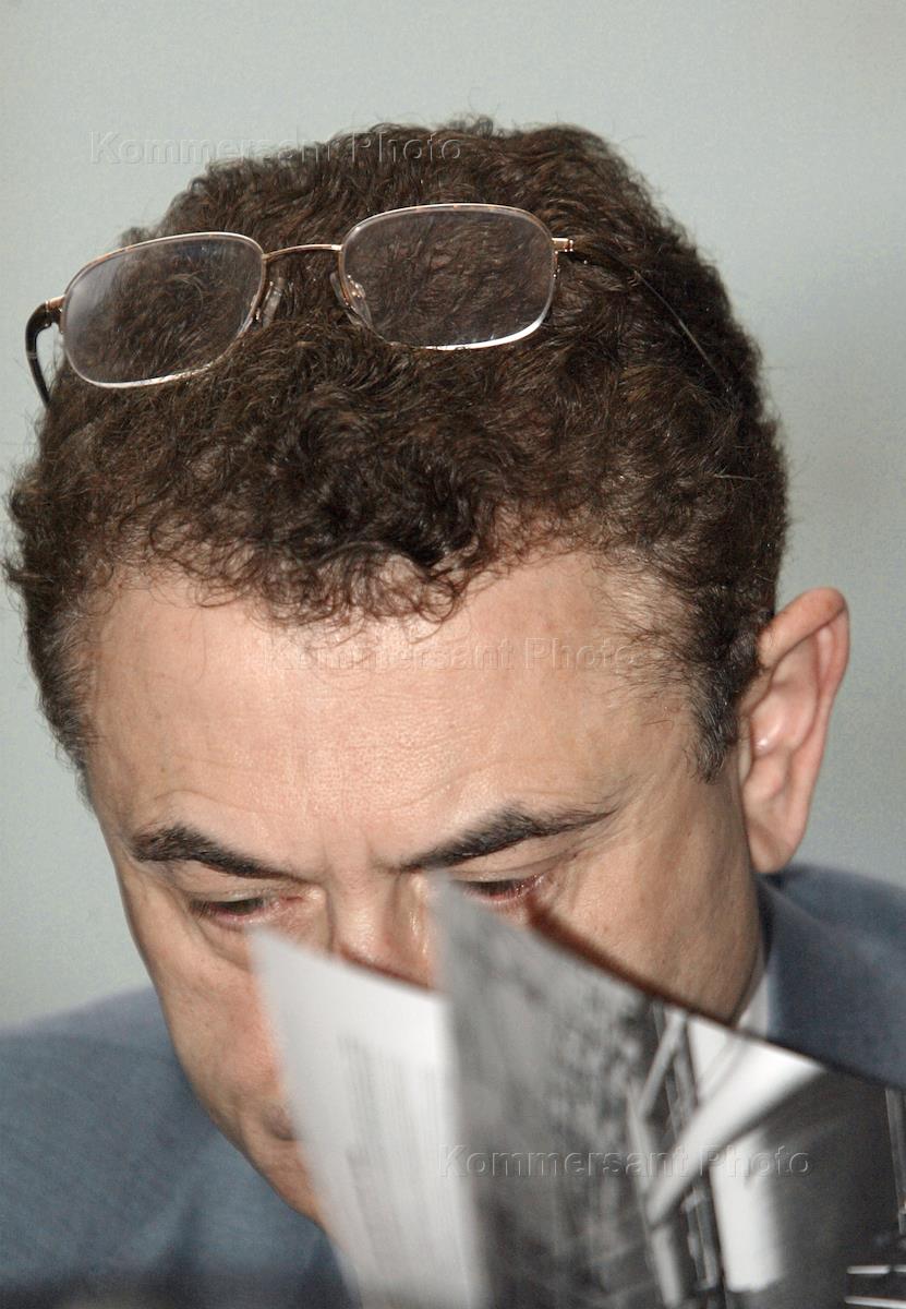 Vice president of Sibneft oil company Alexander Korsik attends a board meeting of YukosSibneft - the giant oil company which resulted from Sibneft and Yukos merger. The meeting was held in the Radisson Slavyanskaya Hotel.