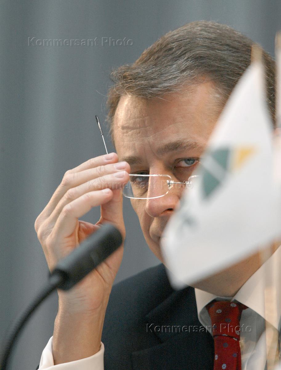 Vice president of Sibneft oil company Alexander Korsik attends a board meeting of YukosSibneft - the giant oil company which resulted from Sibneft and Yukos merger. The meeting was held in the Radisson Slavyanskaya Hotel.