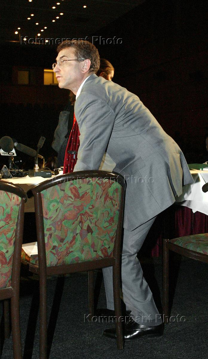 Член совета директоров ОАО"НК ЮКОС" Александр Темерко во время пресс-конференции по итогам заседания правления компании "ЮКОССибнефть". Пресс-конференция прошла в гостинице "Рэдиссон-Славянская".