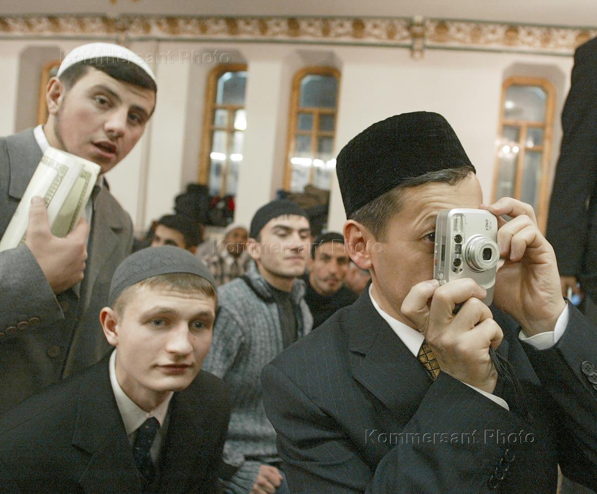 Participants of the competition of Coran readers in the Sobornaya mosque. One of them is taking a picture.