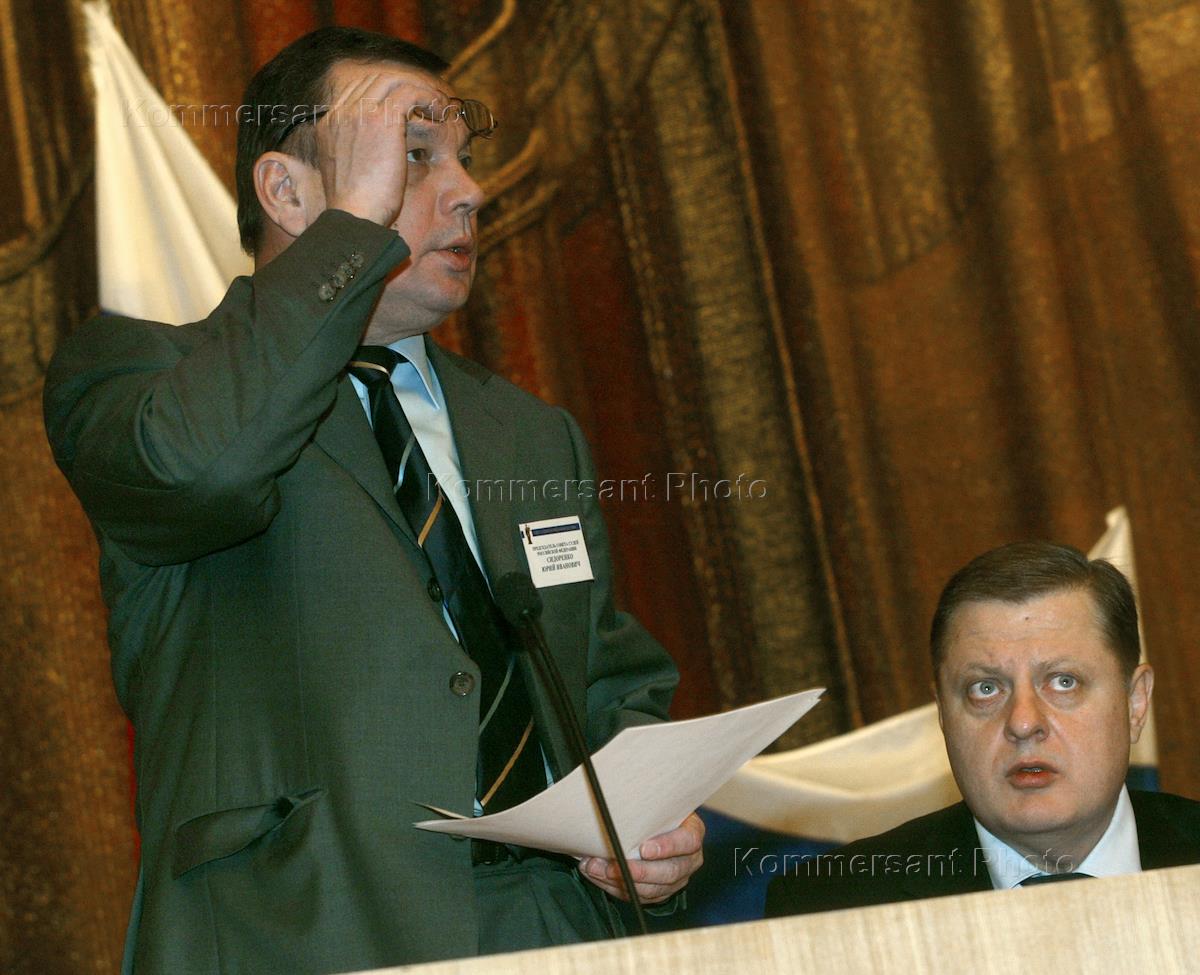 Chairman of the Russian Judges Council Yury Sidorenko (left) and director general of the Supreme Council Judges Department Alexander Gusev (right) take part in the All-Russian Judges Congress. The congress was held in the President Hotel.