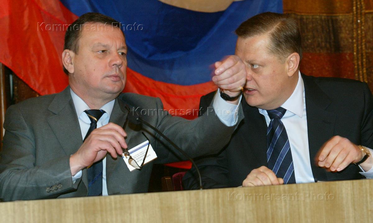 Chairman of the Russian Judges Council Yury Sidorenko (left) and director general of the Supreme Council Judges Department Alexander Gusev (right) take part in the All-Russian Judges Congress. The congress was held in the President Hotel.