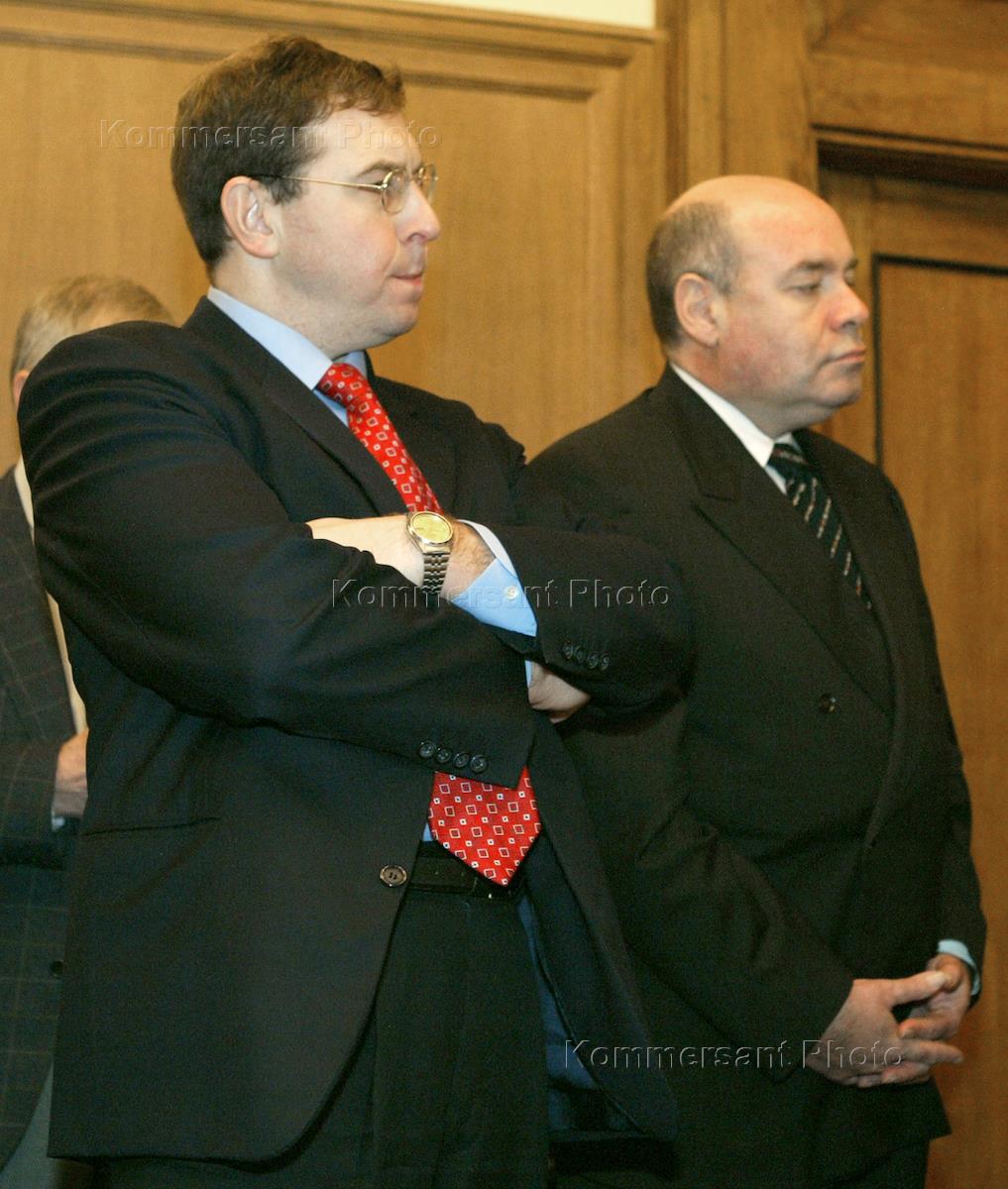 Russian Culture Minister Mikhail Shvydkoi (right) and Presidential Adviser on Economic Questions Andrey Illarionov (left) with president Vladimir Putin (right) visited the Russian State Library. There they met with scientists-historians.