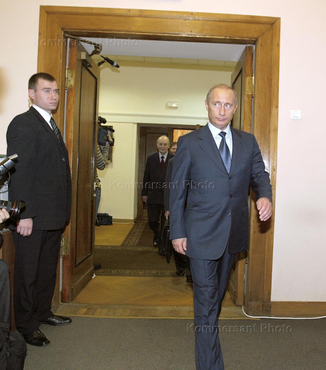 Russian Culture Minister Mikhail Shvydkoi (right) and Presidential Adviser on Economic Questions Andrey Illarionov (left) with president Vladimir Putin (right) visited the Russian State Library. There they met with scientists-historians.