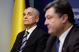 Руководитель Федеральной службы России по надзору в сфере защиты прав потребителей и благополучия человека Геннадий Онищенко (слева) и министр экономического развития и торговли Украины Петр Порошенко (справа) во время совместной пресс-конференции.