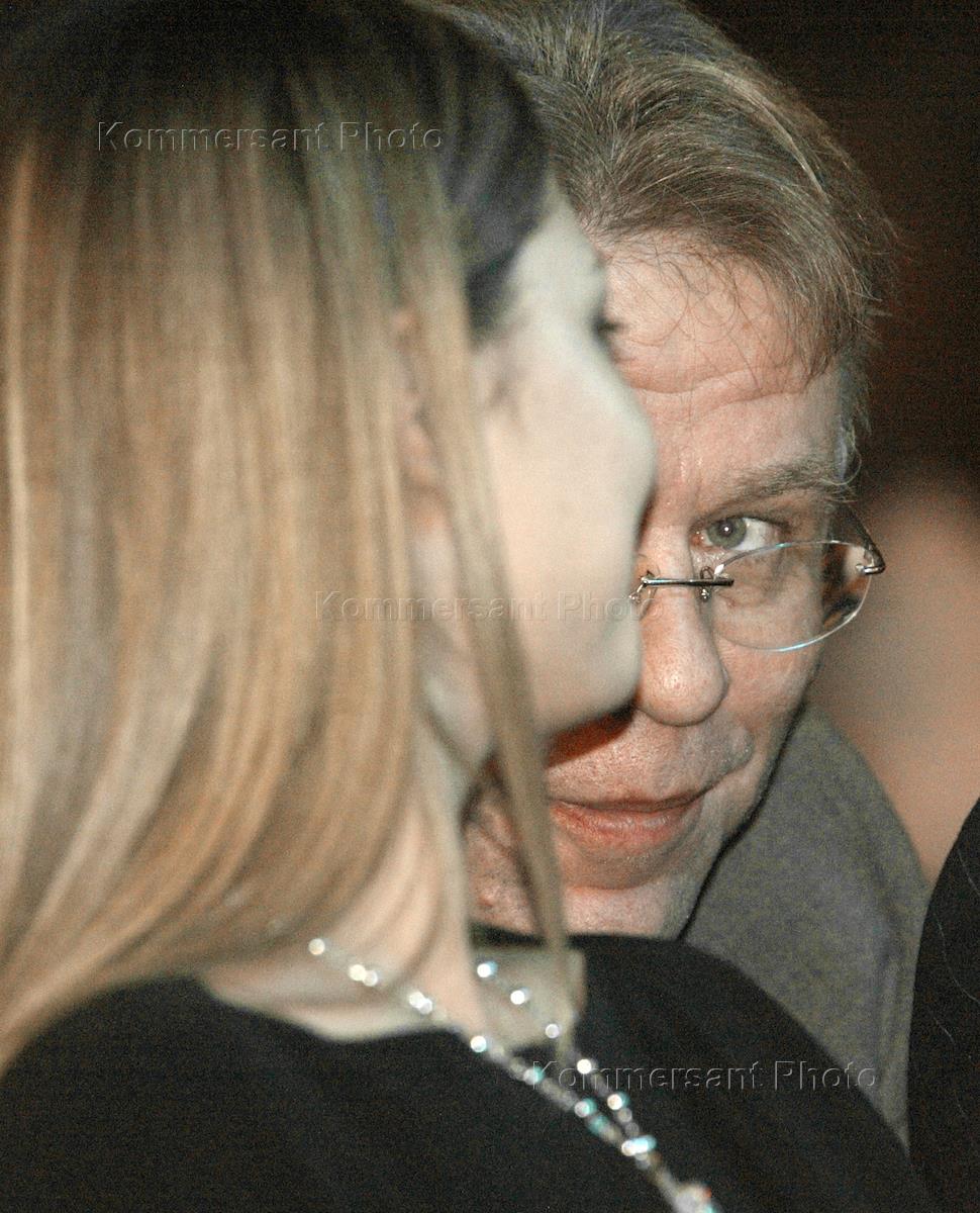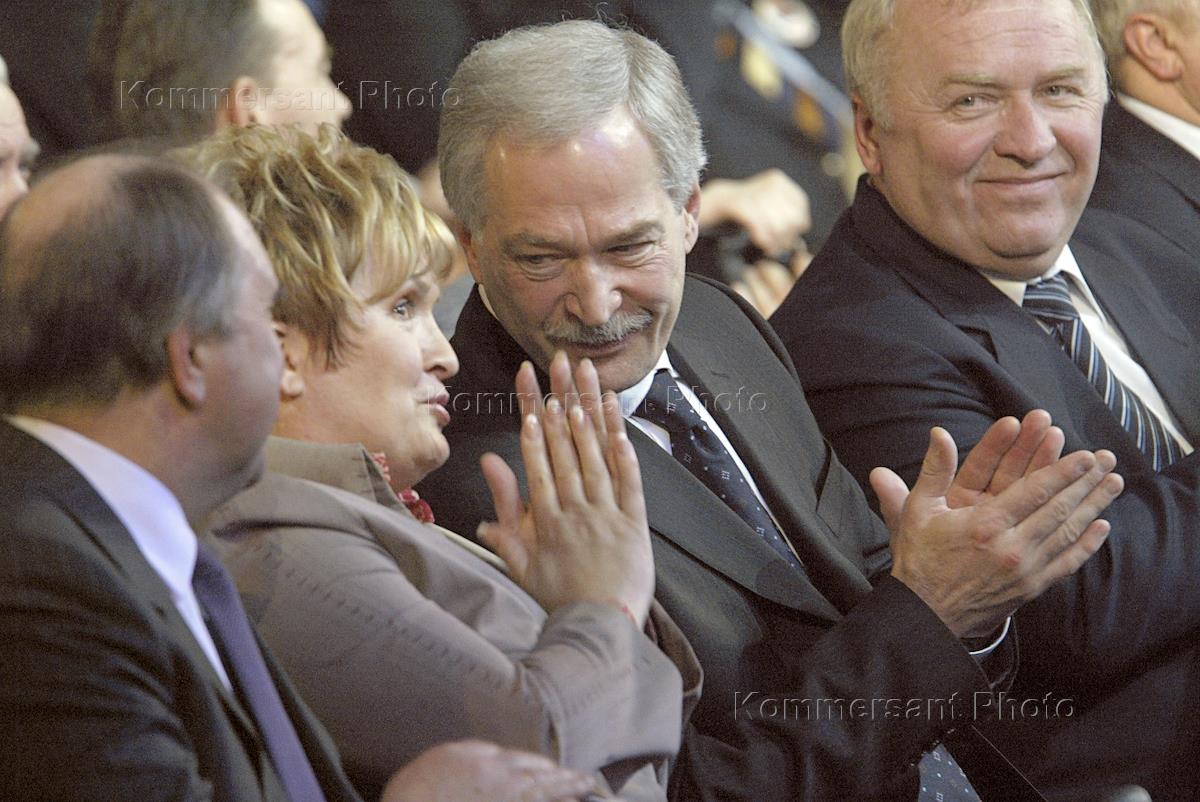 Первый заместитель председателя Государственной Думы России Любовь Слиска (слева) и лидер партии "Единая Россия", министр внутренних дел (МВД) России Борис Грызлов (в центре) во время Форума "Единая Россия" - вместе с Президентом!". Форум прошел в спорт-комплексе "Лужники".