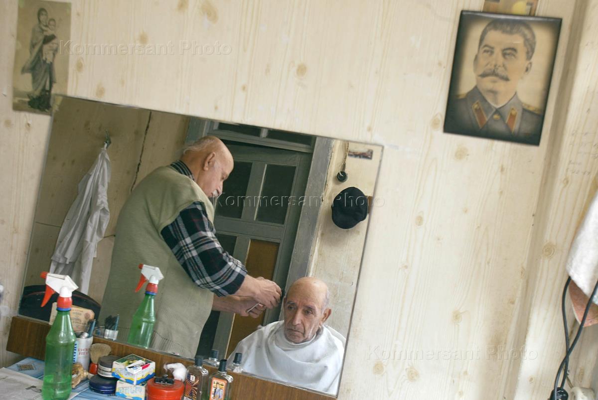 An elderly man has his hair cut in a local hairdresser's shop in Batumi - the capital of the Georgian autonomous Republic of Adjaria.